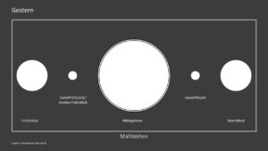 Individuelle Ernährungsformen, mobilere Lebensstile, neue Arbeitszeiten und -orte, die höhere Berufstätigkeit von Frauen und die Zunahme von Singlehaushalten sorgen heute für völlig neue Voraussetzungen. Das Mittagessen wird wochentags in Deutschland etwa nur noch von knapp mehr als der Hälfte der Bevölkerung zuhause eingenommen, 2005 waren es noch zwölf Prozent mehr. Auch das Frühstück, einst wichtigste Mahlzeit, wird „On-the-go“ zunehmend Teil des Arbeitsweges. Essen begleitet uns durch den Alltag, anstatt ihn zu strukturieren. „Heute isst man, wenn man Zeit, Lust oder Hunger hat, und genießt – auch allein – immer häufiger einfach eine kleine Mahlzeit zwischendurch“, sagt die renommierte Food-Expertin Hanni Rützler, die „das Ende der Mahlzeiten (wie wir sie kennen)“ sieht.
