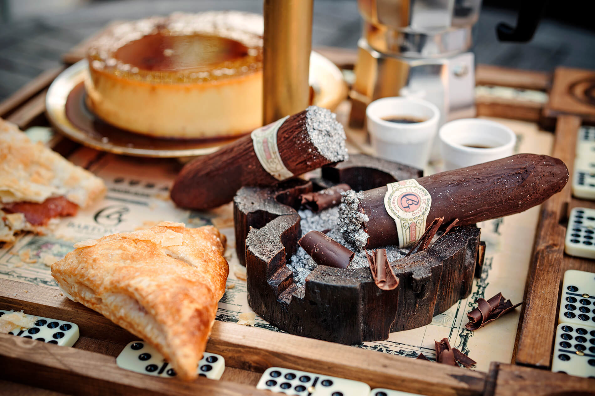 Die Varianten davon sind zahllos und je nach Fall mehr oder weniger kreativ. Zu den absoluten Klassikern zählen zum Beispiel das Tranchieren (in portionsgerechte Stücke schneiden) von Fleisch oder das Filetieren von Fisch vor dem Gast. Effektvoller ist natürlich die Arbeit mit Feuer, also das Flambieren von Gerichten wie Crêpe Suzette oder amerikanischen Desserts wie Bananas Foster oder Baked Alaska. Auch das Abschmecken und Anrichten am Wagen – auch genannt Guéridon – von Caesar Salad oder Beef Tatar zählt zu den Klassikern.
