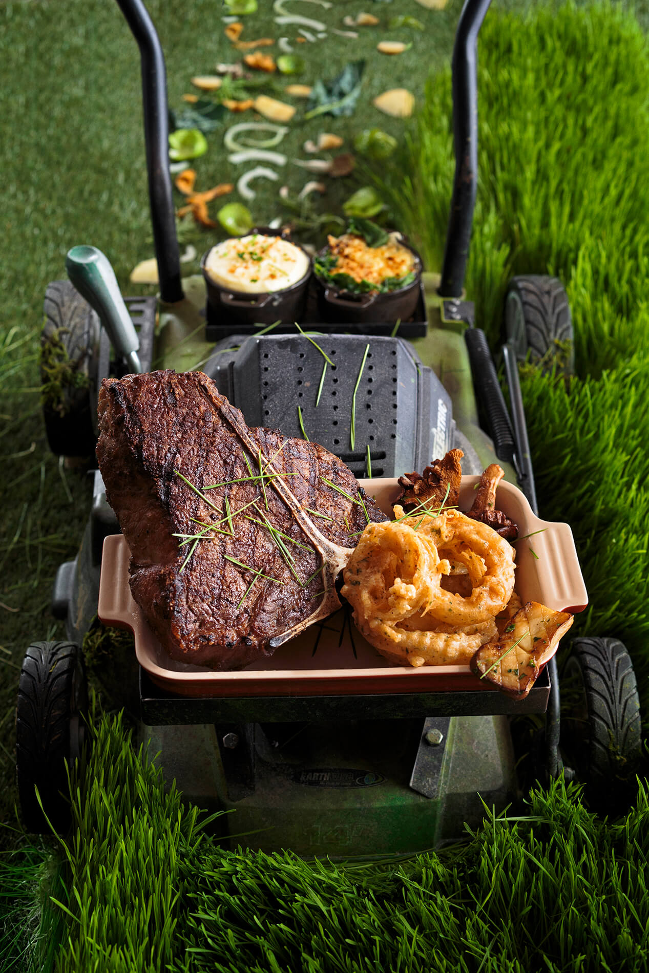 Auch Betriebe ohne Sterne und auf der anderen Seite des Ozeans bedienen sich altbewährter Techniken im Service. Im wiedereröffneten Meissl und Schadn in Wien wird einmal im Jahr das Martini-Gansl tranchiert und ganzjährig der Tafelspitz. „Die Gäste wollen die Qualität der Zutaten mit eigenen Augen sehen“, meint Küchendirektor Jürgen Gschwendtner. Das Meissl und Schadn ist dem gleichnamigen k. u. k. -Restaurant nachempfunden, das 1945 zerstört wurde. Traditionelle Wiener Küche wie zu Zeiten des frühen 20. Jahrhunderts wird dort serviert – auch in dazugehöriger Manier. Deshalb wird der Tafelspitz auch am Wagen serviert mit sechs verschiedenen Stücken vom Rind zur Auswahl. Es gehe dabei nicht bloß um Effekthascherei: „Wir wollen dieses kulturelle Erbe aufrechterhalten“, kommentiert Gschwendtner den Service am Wagen. Ähnliche Methoden verwendet auch das Restaurant The Grill der Major Food Group in New York, das letztes Jahr eröffnet hat. Dort laufen Kellner in stilvollen Zac-Posen-Anzügen durch den Raum und servieren Caesar Salads und richten am Wagen Pasta à la presse an. Küchenchef Mario Carbone will die Fine-Dining-Zeiten der 50er-Jahre wiederaufleben lassen – ein goldenes Zeitalter der Tableside Action.